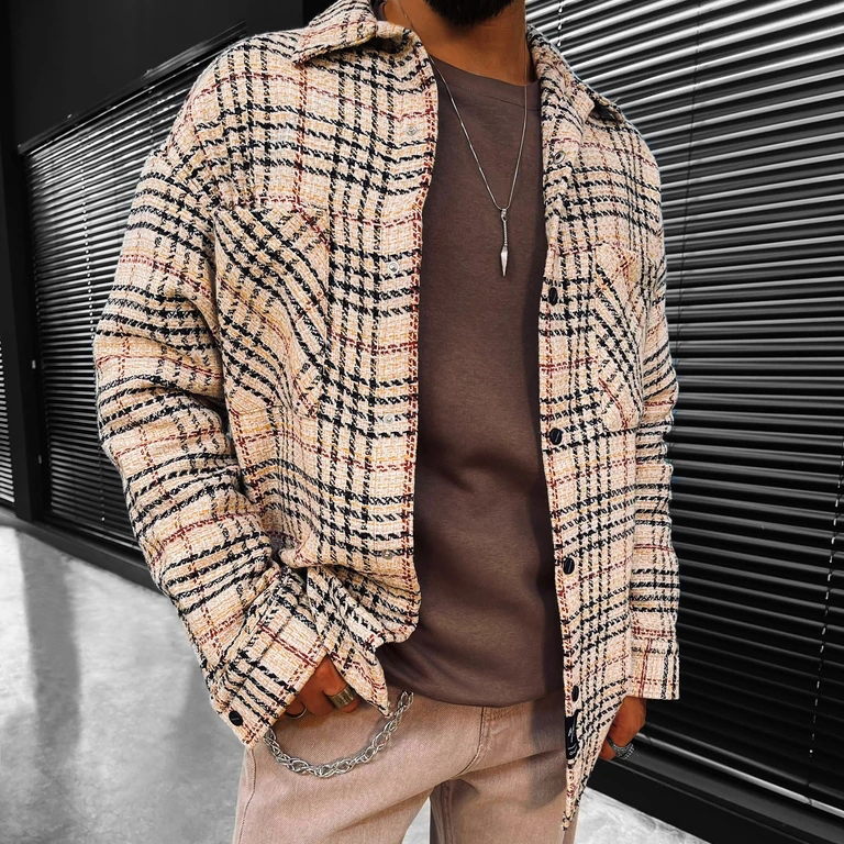 Casual Fashion Plaid Texture Long Sleeve Shirt Jacket